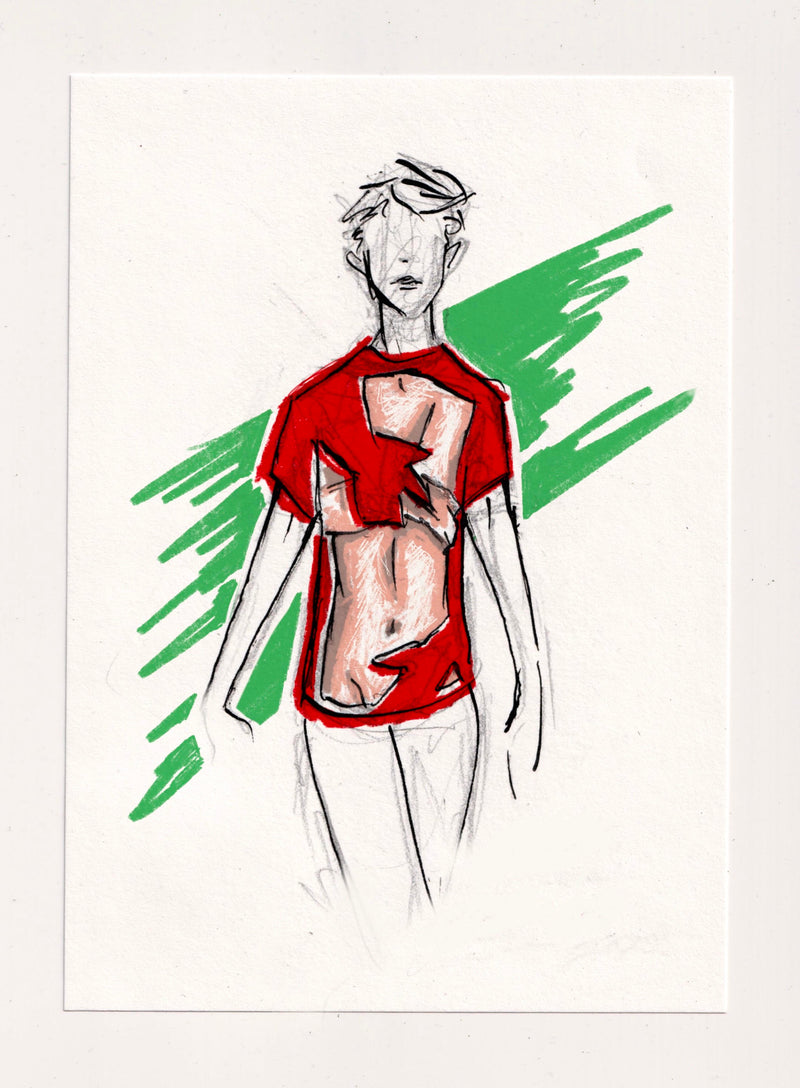 Bringing the painting onto a t-shirt felt like a way of letting it move forward with me. No longer something fixed on a wall, but something lived in—shifting with the body, existing in the everyday.